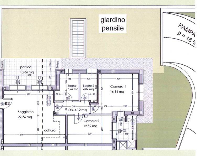 ampio portico che si affaccia su un giardino privato di 123 mq