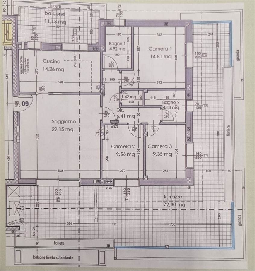 L'immobile è così composto- Ingresso su ampia zona giorno - Cucina separata con accesso a balcone- Disimpegno zona notte- 2 camerette -