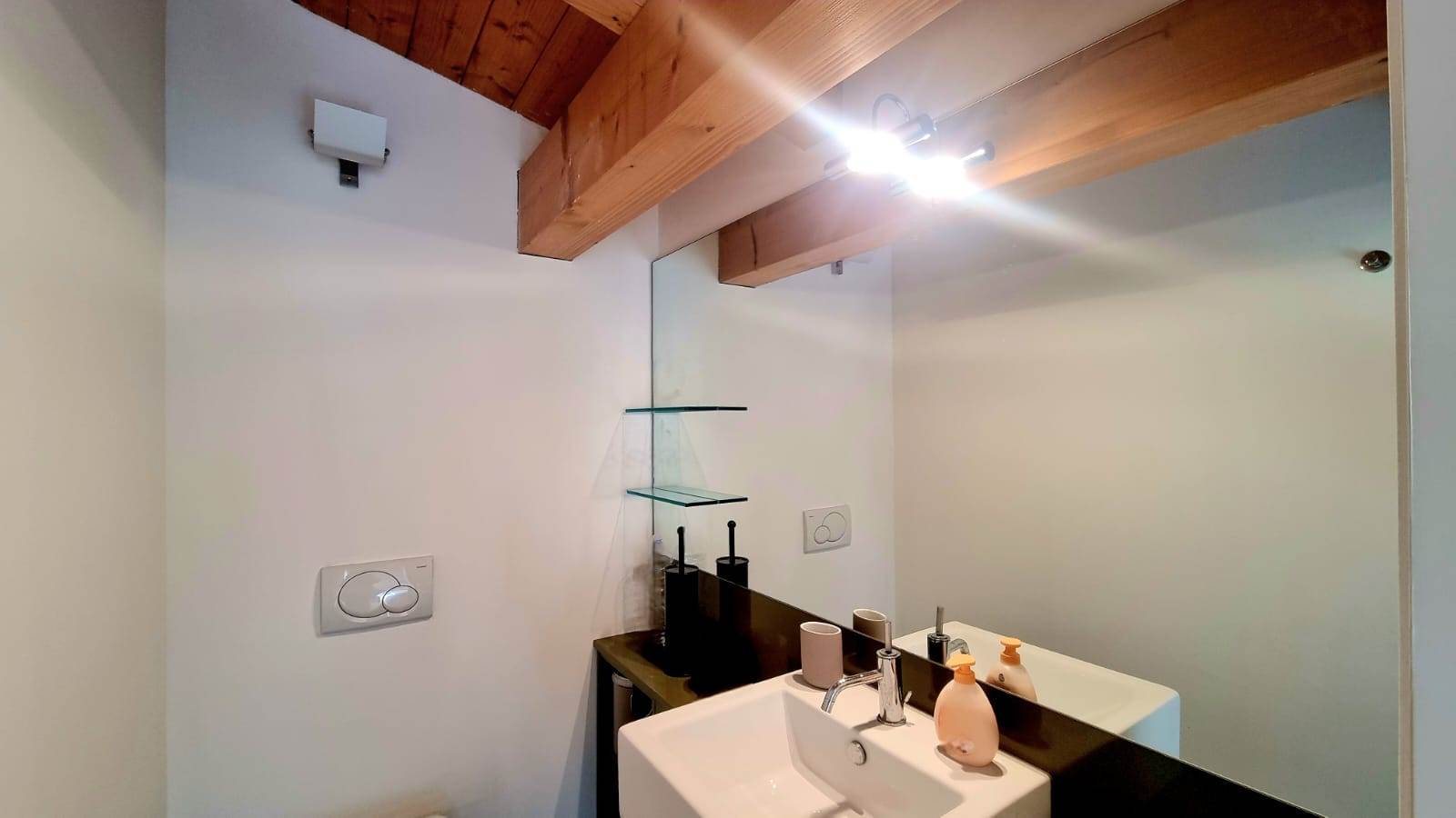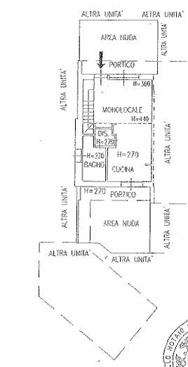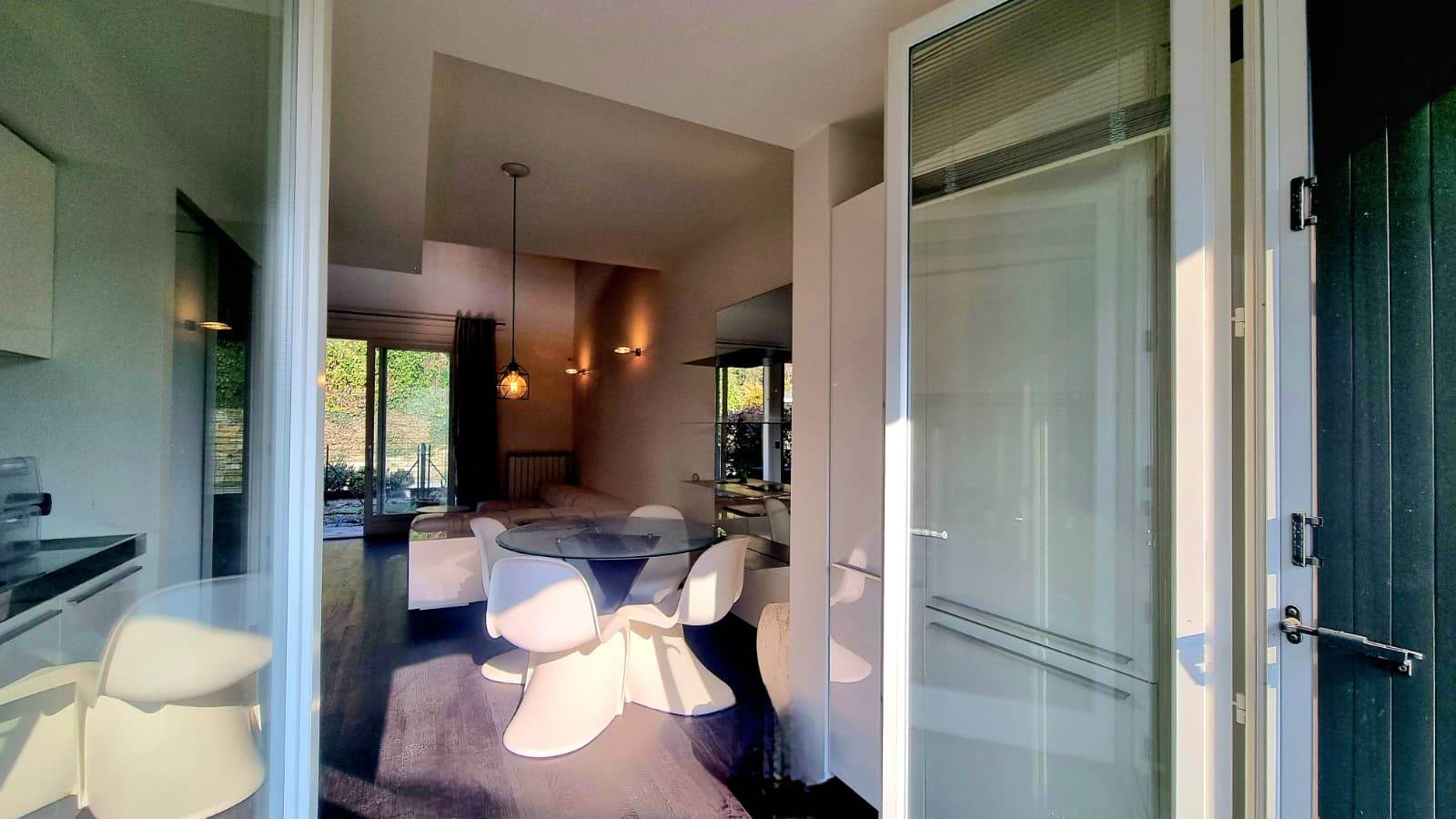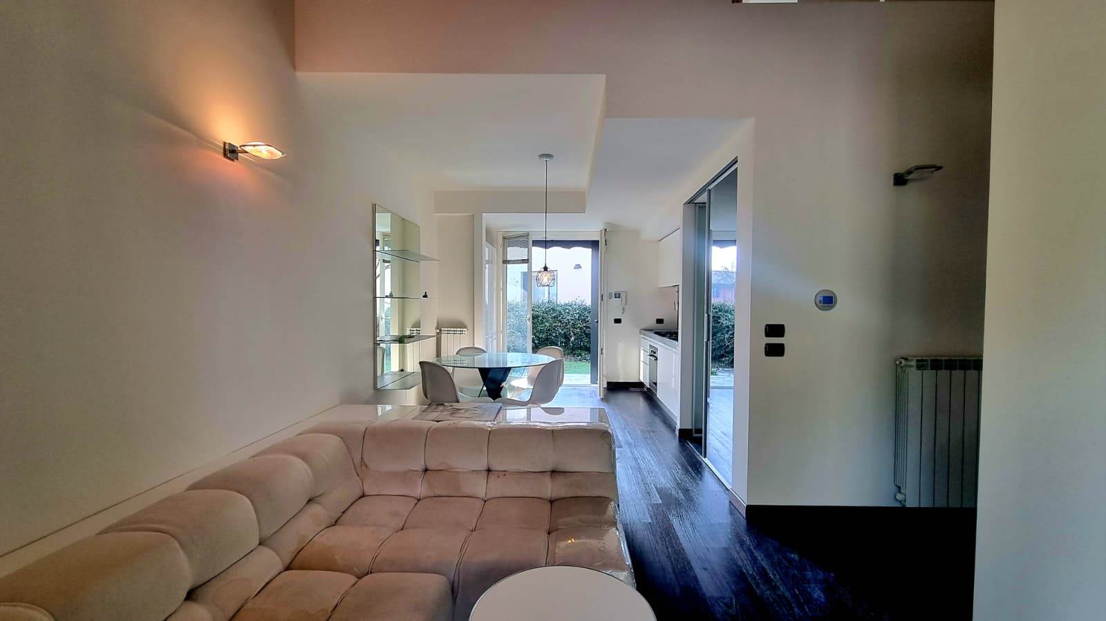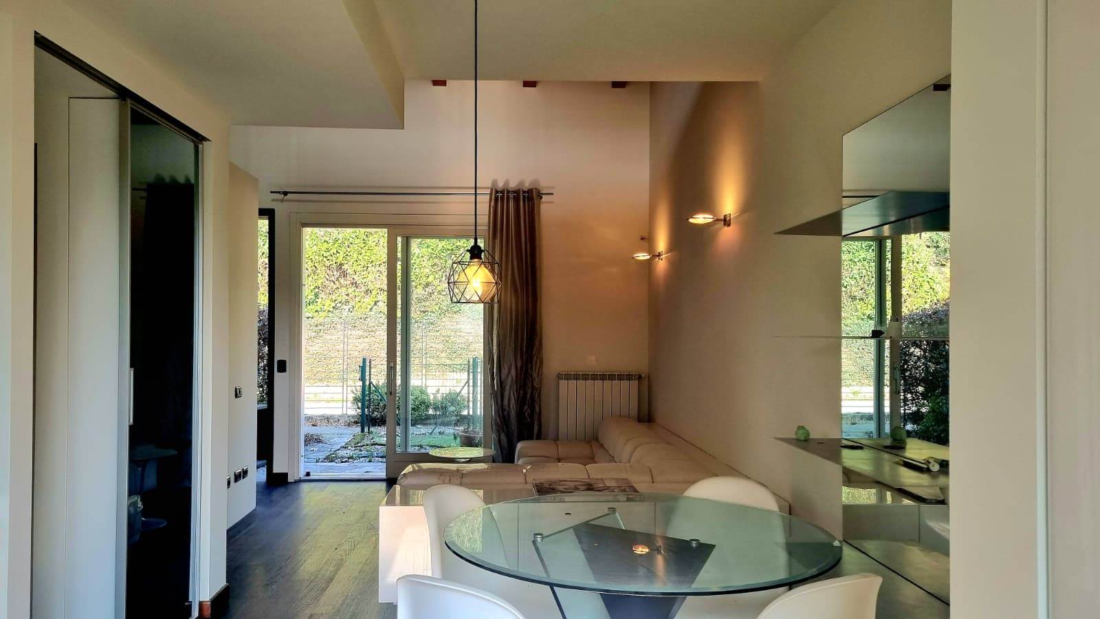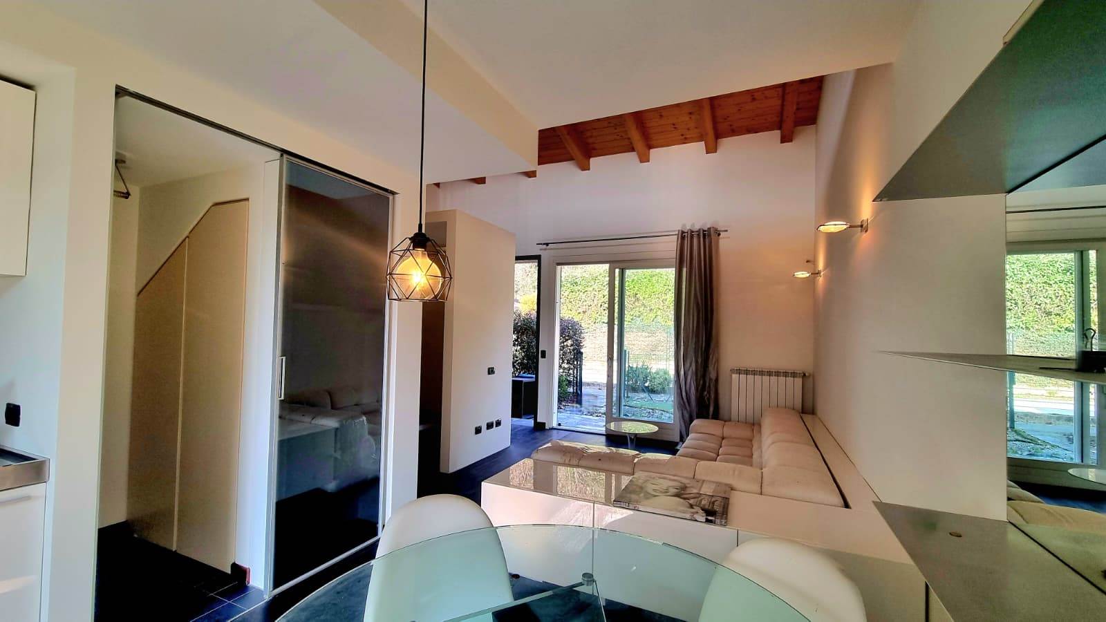 Il loft è sviluppato su due livelli e così composto: una luminosa zona living con doppio accesso sul giardino, cucina a vista ,disimpegno e bagno finestrato.